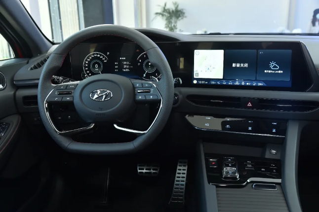 第十代索納塔配有超大智慧連體雙屏,12.3英寸液晶儀表盤+12.3英寸超大中控屏,