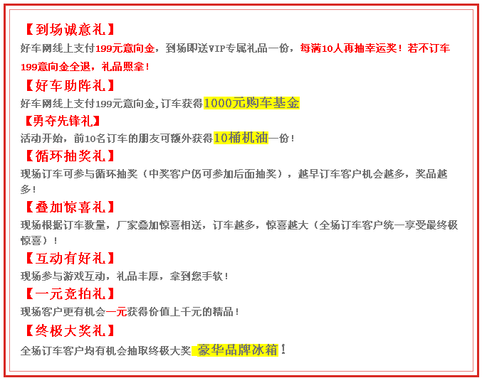 只要您報(bào)名繳納199元意向金=1000元購(gòu)車(chē)基金