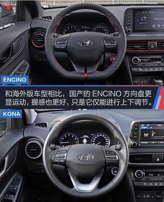 北京現(xiàn)代ENCINO的外觀讓人驚艷,簡潔設計的內(nèi)飾也沒有太多復雜的線條元素或者造型,新車僅通過雙色裝飾來調節(jié)車內(nèi)氛圍。相對于海外版車型,國產(chǎn)的ENCINO更將該車的性能外顯,運動型方向盤就是最好的窗口。