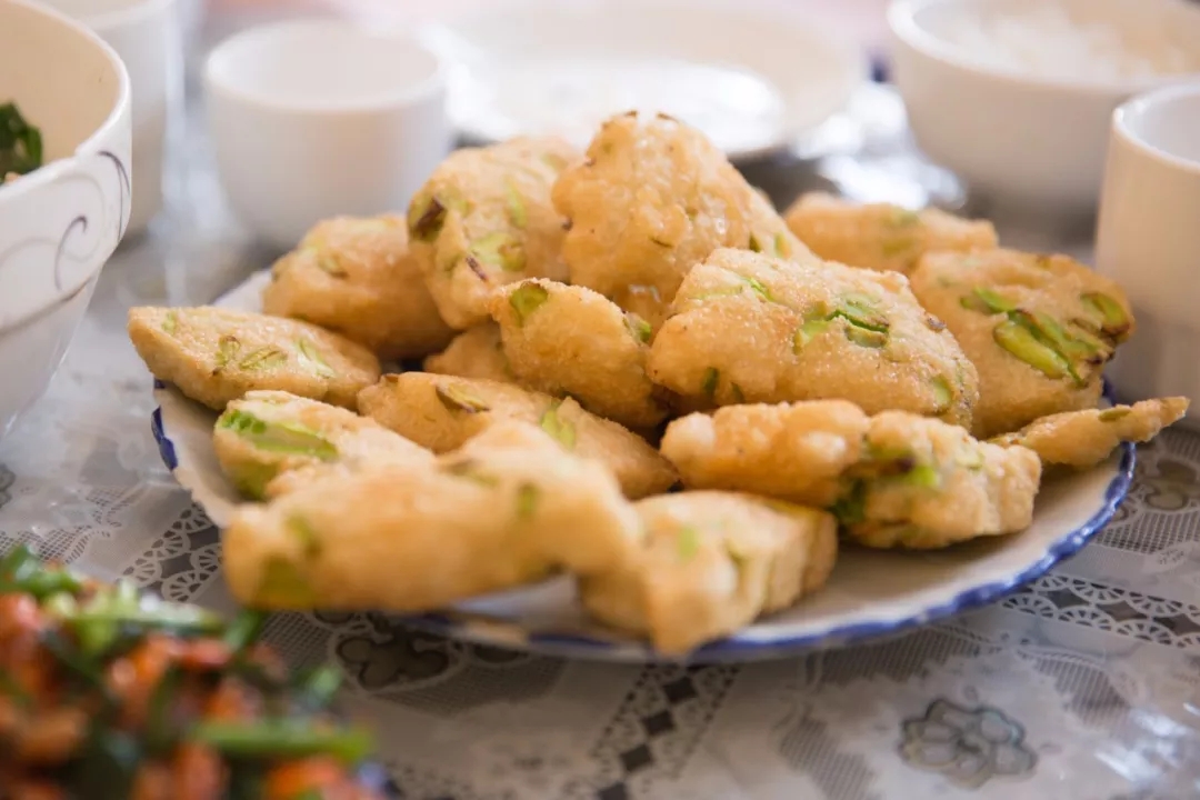 還有一道菜是我特別喜歡的,問向導大哥它的菜名是什么,答曰:“蠶豆包包”,是當?shù)厝说慕蟹?,模樣長得乖巧,名字也這么可愛呢。它更像是一道餐后小甜點,軟軟的糯米包裹著酥松的蠶豆入鍋炸,外酥里嫩,吃的時候蘸少許白糖,口感極佳。