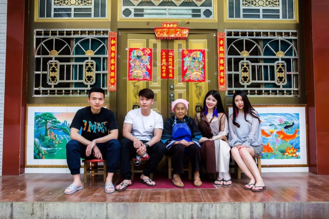 等待女主人做菜的間隙,我們參觀了花米飯染坊,也和家里八十多歲的老奶奶坐在一起聊家常。