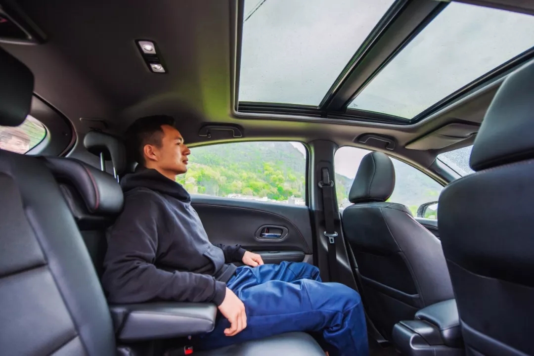 坐在后排,我仔細觀察起XR-V的全景天窗,它面積大,采光效果好,如果是白天的話坐在車里有一種通透、不受束縛的感覺。坐在駕駛室的海龍見我觀察天窗,還不忘提醒我,天窗及遮陽板都可以電動一鍵開閉,邊說還邊鄭重其事地演示了一遍,逗得我們直樂。