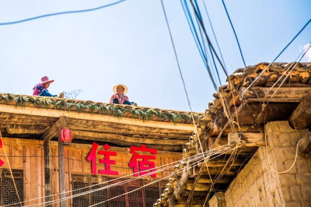土掌房墻體以泥土為料,修建時用夾板固定,填土夯實逐層加高后形成土墻(即所謂"干打壘")我們去的時候,正好有一戶人家正在夯實房頂,幾位農婦在房頂邊閑聊邊敲敲打打。