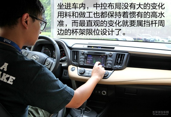 坐進車內(nèi),一切都是那么的熟悉,沒有大的布局改變,很多設計都是那么巧妙、順手,這是張先生對于RAV4榮放的高度評價。中控面板當中的皮革包裹在老款車型當中就有所裝配,提升了整車質(zhì)感,觸感也很舒適,這是家人都很喜歡和推崇的配置。