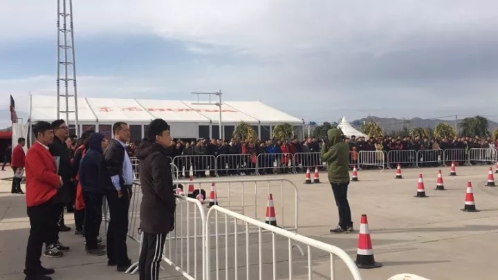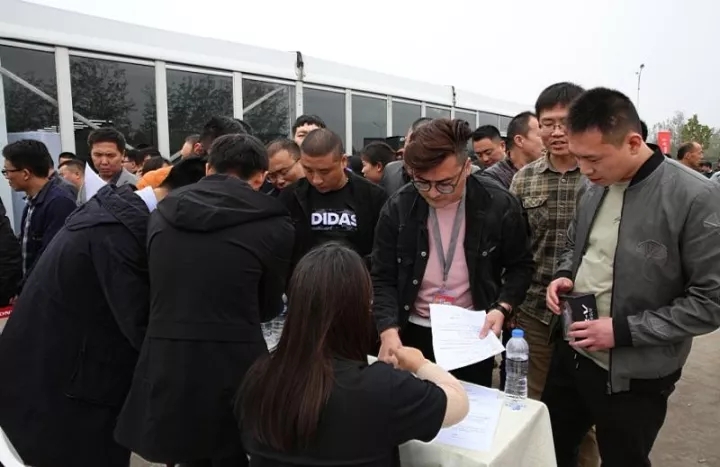 現(xiàn)場參與活動的車友們有序排隊等待報名