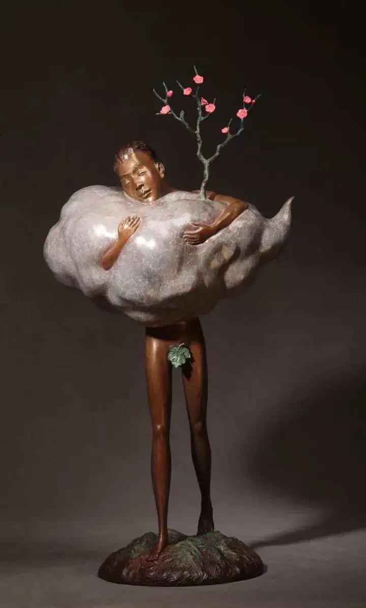 凡是駕車去到宋莊藝術(shù)區(qū)的人,在行徑宋莊環(huán)島時一定會留意到環(huán)島中間高聳的地標(biāo)性的建筑,陳靈平稱它為“七層塔”。它像倒扣的喇叭,從下往上逐漸收緊,以水泥、紅磚、鋼鐵等不同的材質(zhì)層層堆疊,一直延伸到金燦燦的頂尖。這是著名藝術(shù)家方力鈞老師的作品,寓意“從草根至金頂,階層分明”,也是宋莊藝術(shù)生態(tài)的象征。“藝術(shù)家或許不像坐在寫字樓里的人那樣每天996,但這個行業(yè)終究和這座塔的寓意一樣,你只有無比努力,才有機會爬到塔尖?!痹谶@里打拼十余年的“老宋莊人”,陳靈平見證了宋莊從默默無聞的小村莊發(fā)展到名鎮(zhèn)一方的藝術(shù)產(chǎn)業(yè)區(qū),也見過無數(shù)追夢者來過、離開。“不是每個人都能堅持下去,選擇生活在宋莊的藝術(shù)家,都在苦苦追求自己的藝術(shù)理想?!痹谒吻f的這些年,陳靈平正是這樣一步一步的摸爬滾打,經(jīng)過幾年的沉淀,思考,慢慢找到自己藝術(shù)創(chuàng)作的契合點。在他的藝術(shù)路線發(fā)展過程中,每個時期的雕塑作品都遵從自己當(dāng)時的心境,比如《青春系列》是剛離開校園時青春的創(chuàng)作沖動。而后續(xù)幾年面對生活的壓力以及亟需確定自己藝術(shù)風(fēng)格,以內(nèi)心的焦躁和無處釋放的壓力為原點,創(chuàng)作出《孤獨者的夢》系列作品。《孤獨者的夢》系列作品一經(jīng)展出,即獲得行業(yè)專家和前輩的高度評價,陳靈平也由此確定了以“花枝”為符號的藝術(shù)風(fēng)格。而近幾年陳靈平的主要作品也延續(xù)了“花枝”的符號元素,這就是更廣為人知的《夢尋桃花源》系列。《夢尋桃花源》系列參加過一系列展覽,不僅收到業(yè)界好評也被多家藝術(shù)機構(gòu)和高檔酒店收藏。在陳靈平的工作室里,我還看到了更多蘊含著“花枝”符號的創(chuàng)意作品,其中不乏尚未發(fā)布的全新系列。對于陳靈平來說,追求藝術(shù)成就的道路上從來沒有休止符,哪怕在聊天的過程中,他也興奮的和朋友們分享未來的創(chuàng)意思路和展覽規(guī)劃。