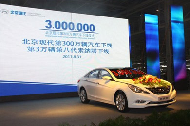 2011年8月31日,北京現(xiàn)代汽車有限公司(以下簡(jiǎn)稱北京現(xiàn)代)第300萬輛汽車在北京正式下線。至此,北京現(xiàn)代成為國(guó)內(nèi)最短時(shí)間實(shí)現(xiàn)300萬輛產(chǎn)量的汽車企業(yè)。繼2010年4月8日第200萬輛下線后,北京現(xiàn)代僅用了16個(gè)月的時(shí)間就實(shí)現(xiàn)了第300萬輛汽車下線。北汽集團(tuán)董事長(zhǎng)、北京現(xiàn)代董事長(zhǎng)徐和誼在下線儀式上講道:“9年來,以‘現(xiàn)代速度’與‘現(xiàn)代品質(zhì)’鑄就的300萬輛,是北京現(xiàn)代發(fā)展過程中一個(gè)跨時(shí)代的里程碑?!?