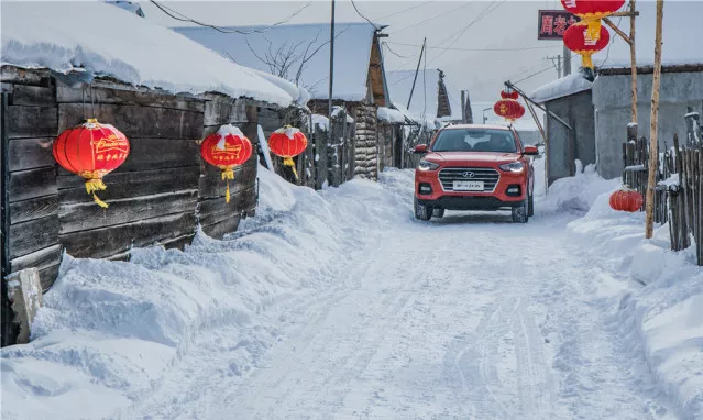 皚皚白雪、火紅燈籠,窄窄的道路,新一代ix35行駛其中,絲毫不怕車輛、行人和動(dòng)物突然出現(xiàn),FCA前碰撞預(yù)警制動(dòng)系統(tǒng),主動(dòng)化解未知危險(xiǎn)。