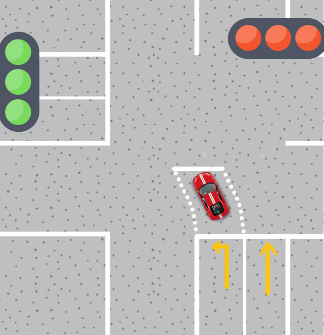 左轉(zhuǎn)彎待轉(zhuǎn)區(qū)是指當(dāng)同向直行車道綠燈亮起時,左轉(zhuǎn)車輛必須進入待轉(zhuǎn)區(qū)域等候,等待交通信號燈的變化,允許通行才可左轉(zhuǎn)。