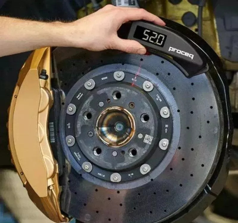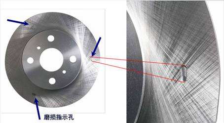 大多數(shù)剎車盤產(chǎn)品有磨損指示器,就是在盤面上會(huì)分布3個(gè)小凹坑。用游標(biāo)卡尺量一下小坑的深度是1.5mm。也就是說,剎車盤雙面的總磨損深度達(dá)到3mm,我們建議及時(shí)更換剎車盤。